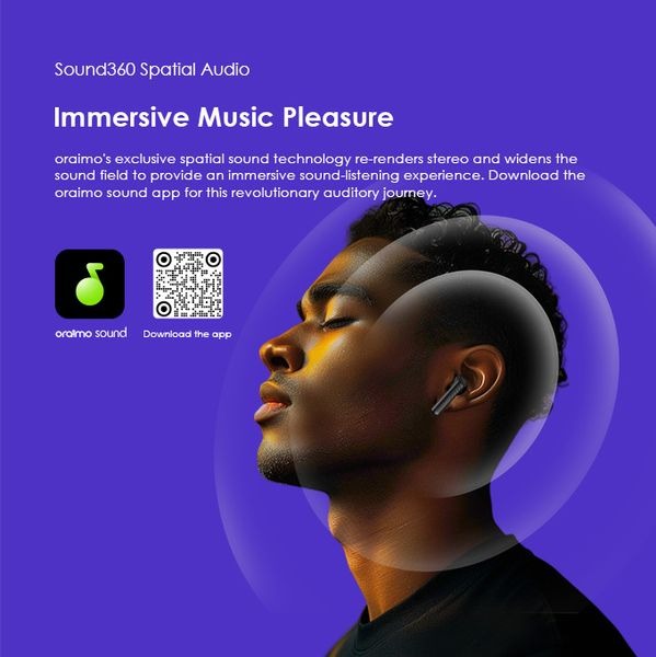 【50-Hour Long Playtime,Joyful Vibe, Days and Nights】On a full charge, oraimo FreePods Neo offers 7 hours of power and the handy charging case provides a further 43 hours to keep you going throughout the days and nights. 【Sound360 Spatial Audio,Immervise Music Pleasure】oraimo's exclusive spatial sound technology re-renders stereo and wides the sound field to provide an immersive sound-listening experience. Download the oraimo sound app for this revolutionary auditory journey. 【Half-in-ear Comfort,Designed To Fit Softly In Your Ears】Dive into your favorite tunes without the squeeze! oraimo half-in-Ear FreePods Neo delivers stellar sound quality and superior comfort, turning every listening session into bliss. 【2-mic ENC Technology,Crystal Clear Voice in Calls】With built-in mic beamforming array and AI Deep algorithm, oraimo FreePods Lite can detect and filter out ambient sounds, so the people you are calling can hear your voice more clearly. 【oraimo Sound App,Customize Your Listening】Set the perfect sound for your favourite song with oraimo Sound App. Rock it, jazz it, bass it or listen in any way you like it.Scan to download the oraimo Sound APP from App Store or Google Play. AniFast™ Fast Charge 【Charge 10 Minutes, Play 120 Minutes】Just 10 minutes of fast charging can provide you with 120 minutes of music listening. You will never miss a beat anymore. 【Low-latency Game Mode,Audio and Video Instant Sync】Featuring Bluetooth 5.3 and Game Mode, you can emerge in your game with audio and video sync in seconds. The upgraded game sound effects make your gaming experience more exciting, dynamic, and immersive. 【IPX4 Waterproof & Sweat Protection,Not Afraid of Water and Sweat】 Featured with an IPX4 waterproof rating and nano coating, splashes and sweat won't stop the music from playing.*Water and sweatproof is only for earbuds and not for the charging case.