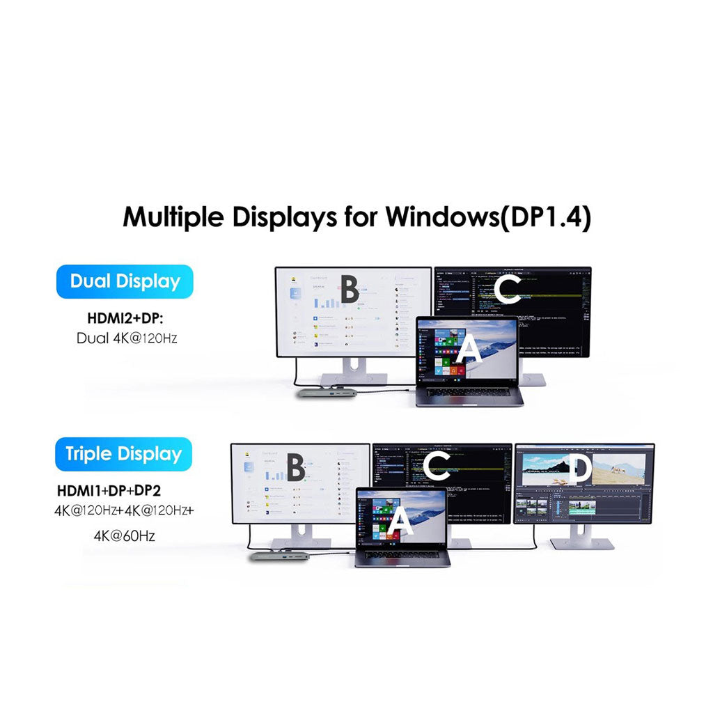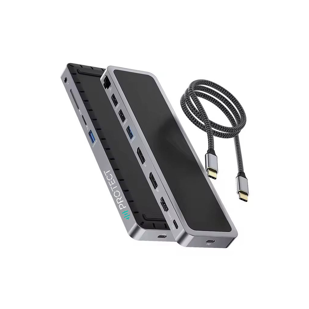 PROTECT 12-in-1 USB-C Docking Station with 100W C-C Cable | Dual DisplayPort 4K@120Hz + HDMI 4K@60Hz | Triple Monitor | USB 3.0 | Ethernet | SD/TF | Audio | For MacBook & Windows